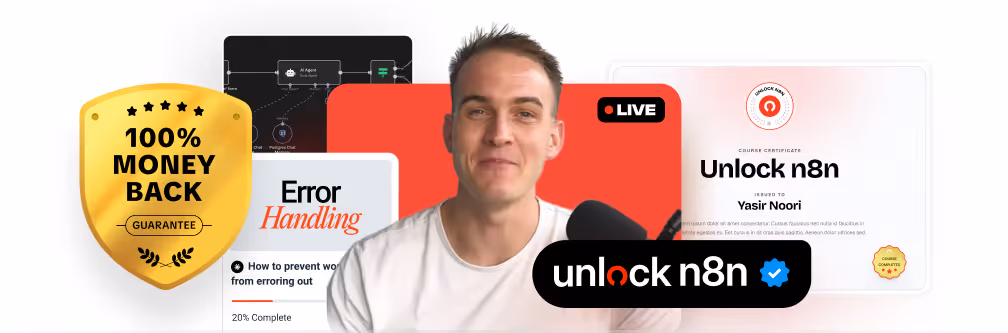 Lifetime access to all course material and every future update. And an Unlock n8n completion certificate you can stick on your LinkedIn.